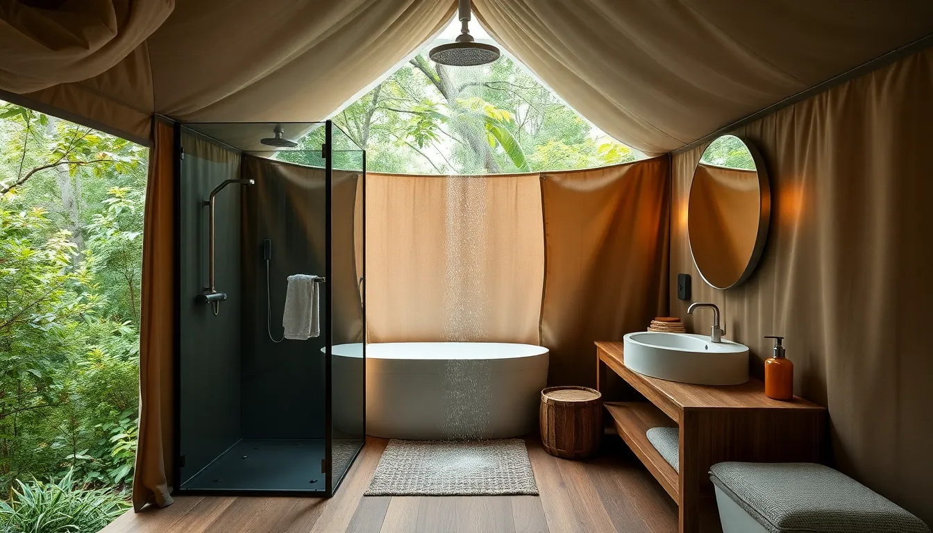 Glamping bathrooms provide essential comfort and sophistication in outdoor settings. Luxurious and eco-friendly aspects enhance the overall experience.